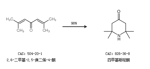1.通過2,6-二甲基-2,5-庚二烯-4-酮合成四甲基哌啶酮,收率約98%;