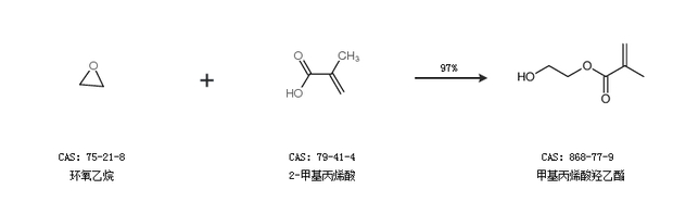 1.通過(guò)環(huán)氧乙烷和2-甲基丙烯酸合成甲基丙烯酸羥乙酯,收率約97%;
