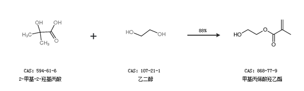 2.通過(guò)2-甲基-2-羥基丙酸和乙二醇合成甲基丙烯酸羥乙酯,收率約88%;