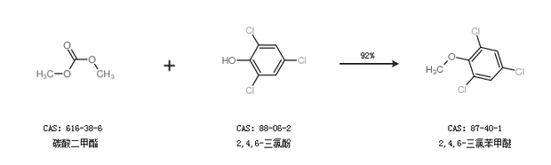2.通過碳酸二甲酯和2,4,6-三氯酚合成2,4,6-三氯苯甲醚,收率約92%;