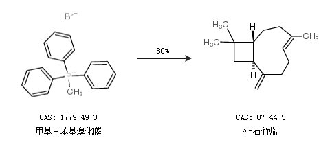 1.通過甲基三苯基溴化膦合成β-石竹烯,收率約80%;