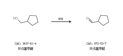 1.通過環(huán)戊基甲醇合成環(huán)戊基甲醛,收率約80%;