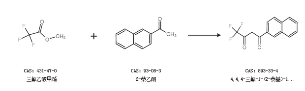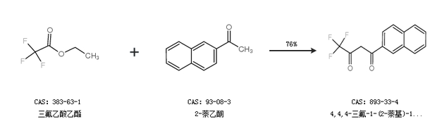 1.通過三氟乙酸乙酯和2-萘乙酮合成4,4,4-三氟-1-(2-萘基)-1,3-丁二酮,收率約76%;