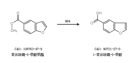 2.通過(guò)苯并呋喃-5-甲酸甲酯合成1-苯并呋喃-5-甲酸,收率約96%;