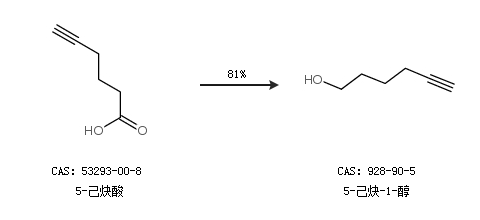 2.通過(guò)5-己炔酸合成5-己炔-1-醇,收率約81%;