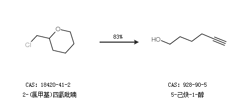 1.通過(guò)2-(氯甲基)四氫吡喃合成5-己炔-1-醇,收率約83%;