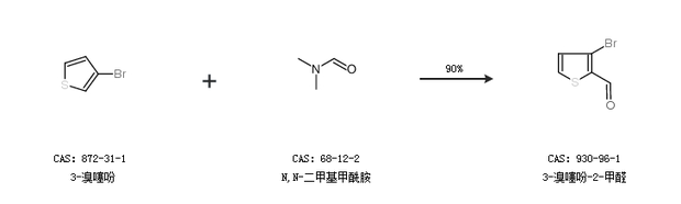 2.通過3-溴噻吩和N,N-二甲基甲酰胺合成3-溴噻吩-2-甲醛,收率約90%;