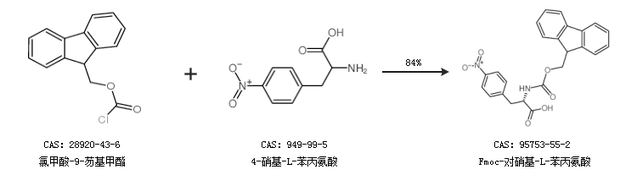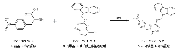 1.通過氯甲酸-9-芴基甲酯和4-硝基-L-苯丙氨酸合成Fmoc-對硝基-L-苯丙氨酸,收率約84%;