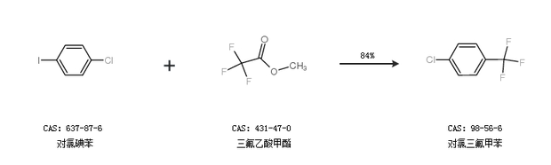 2.通過對氯碘苯和三氟乙酸甲酯合成對氯三氟甲苯,收率約84%;