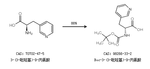1.通過3-(3-吡啶基)-D-丙氨酸合成Boc-3-(3-吡啶基)-D-丙氨酸,收率約88%;