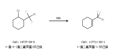 1.通過(guò)1-溴-2-(溴二氟甲基)環(huán)己烷合成1-溴二氟甲基-1-環(huán)己烯,收率約39%;
