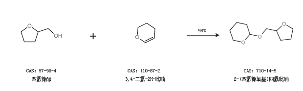 1.通過四氫糠醇和3,4-二氫-2H-吡喃合成2-(四氫糠氧基)四氫吡喃,收率約98%;
