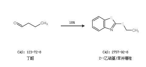 2.通過丁醛合成2-(乙硫基)苯并噻唑,收率約18%;