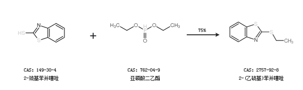 1.通過2-巰基苯并噻唑和亞磷酸二乙酯合成2-(乙硫基)苯并噻唑,收率約75%;