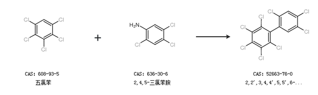 2.通過五氯苯和2,4,5-三氯苯胺合成2,2'',3,4,4'',5,5'',6-八氯聯(lián)苯