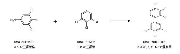 1.通過3,4,5-三氯苯胺和1,2,3-三氯苯合成2,3,3'',4,4'',5''-六氯聯(lián)苯