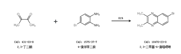 1.通過(guò)2,3-丁二酮和4-溴鄰苯二胺合成2,3-二甲基-6-溴喹噁啉,收率約81%;