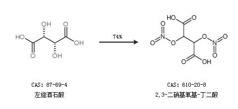 1.通過左旋酒石酸合成2,3-二硝基氧基-丁二酸,收率約74%;