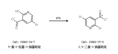 1.通過5-溴-2-羥基-3-硝基吡啶合成2,5-二溴-3-硝基吡啶,收率約97%;