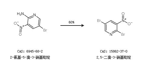 2.通過2-氨基-5-溴-3-硝基吡啶合成2,5-二溴-3-硝基吡啶,收率約60%;