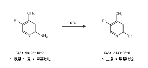 1.通過2-氨基-5-溴-4-甲基吡啶合成2,5-二溴-4-甲基吡啶,收率約67%;