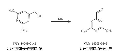 1.通過2,6-二甲基-3-羥甲基吡啶合成2,6-二甲基吡啶-4-甲醛,收率約13%;