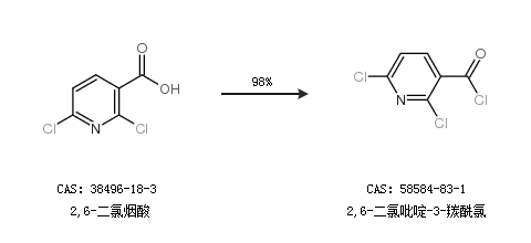1.通過2,6-二氯煙酸合成2,6-二氯吡啶-3-羰酰氯,收率約98%;