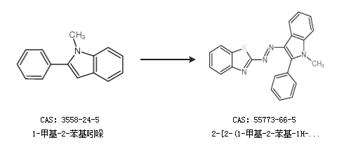 中文別名 2-(1-甲基-2-苯基-吲哚-3-偶氮)-苯并噻唑;1-甲基-2-苯基-3-(苯并噻唑-2-基偶氮基)-1H-吲哚;