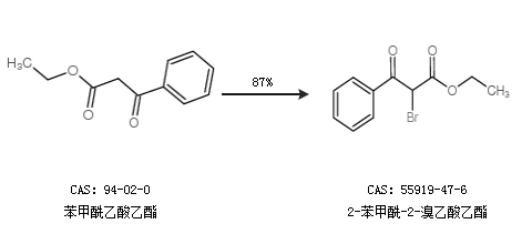 2.通過苯甲酰乙酸乙酯合成2-苯甲酰-2-溴乙酸乙酯,收率約87%;