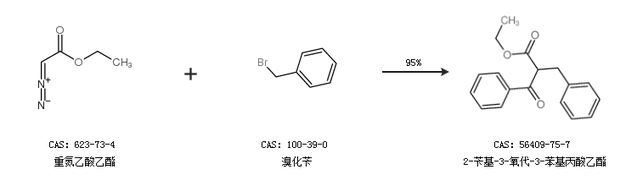 2.通過重氮乙酸乙酯和溴化芐合成2-芐基-3-氧代-3-苯基丙酸乙酯,收率約95%;