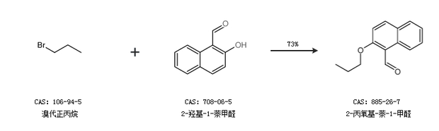 1.通過溴代正丙烷和2-羥基-1-萘甲醛合成2-丙氧基-萘-1-甲醛,收率約73%;