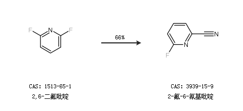 1.通過2,6-二氟吡啶合成2-氟-6-氰基吡啶,收率約66%;