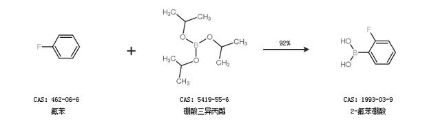 2.通過氟苯和硼酸三異丙酯合成2-氟苯硼酸,收率約92%;