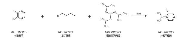 1.通過鄰溴氟苯、正丁基鋰和硼酸三異丙酯合成2-氟苯硼酸,收率約63%;
