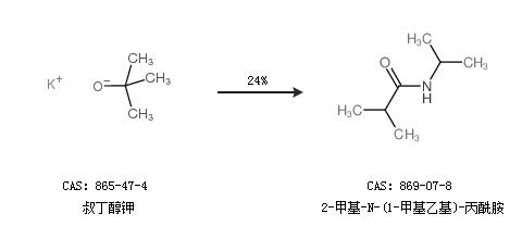 2.通過叔丁醇鉀合成2-甲基-N-(1-甲基乙基)-丙酰胺,收率約24%;