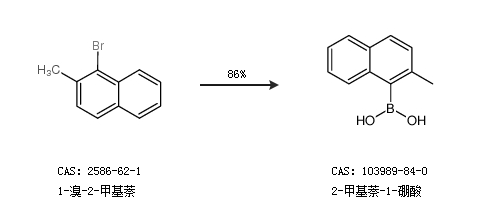 1.通過1-溴-2-甲基萘合成2-甲基萘-1-硼酸,收率約86%;