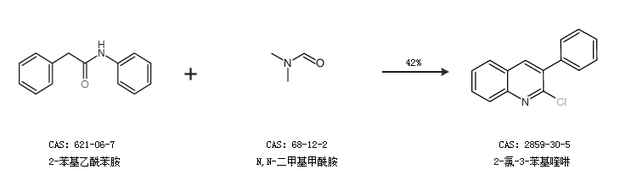 2.通過2-苯基乙酰苯胺和N,N-二甲基甲酰胺合成2-氯-3-苯基喹啉,收率約42%;