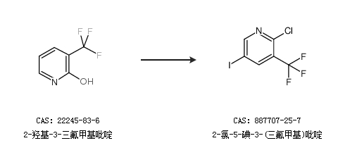2.通過2-羥基-3-三氟甲基吡啶合成2-氯-5-碘-3-(三氟甲基)吡啶