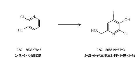 2.通過2-氯-3-羥基吡啶合成2-氯-6-羥基甲基吡啶-4-碘-3-醇
