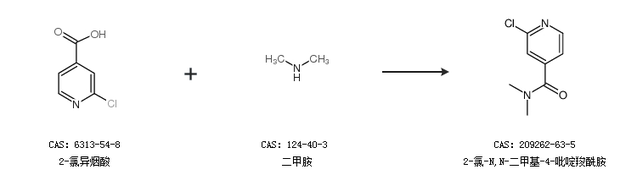 1.通過2-氯異煙酸和二甲胺合成2-氯-N,N-二甲基-4-吡啶羧酰胺
