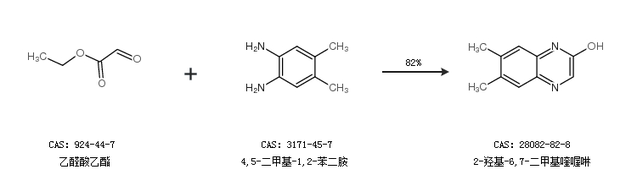 2.通過(guò)乙醛酸乙酯和4,5-二甲基-1,2-苯二胺合成2-羥基-6,7-二甲基喹喔啉,收率約82%;