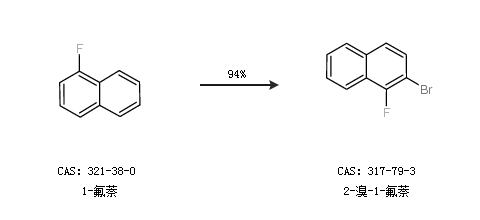 1.通過(guò)1-氟萘合成2-溴-1-氟萘,收率約94%;