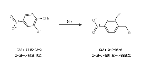 2.通過2-溴-4-硝基甲苯合成2-溴-1-溴甲基-4-硝基苯,收率約94%;