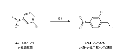 1.通過3-溴硝基苯合成2-溴-1-溴甲基-4-硝基苯,收率約33%;