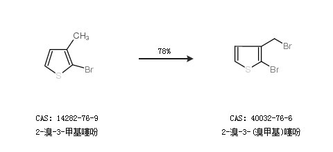 1.通過2-溴-3-甲基噻吩合成2-溴-3-(溴甲基)噻吩,收率約78%;