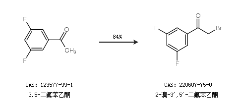 1.通過3,5-二氟苯乙酮合成2-溴-3'',5''-二氟苯乙酮,收率約84%;