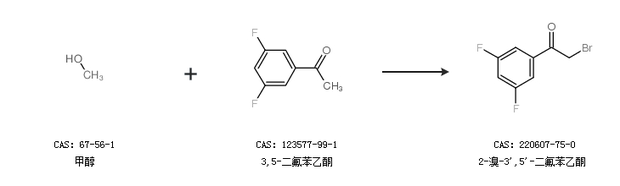 2.通過甲醇和3,5-二氟苯乙酮合成2-溴-3'',5''-二氟苯乙酮