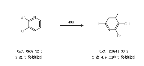 2.通過2-溴-3-羥基吡啶合成2-溴-4,6-二碘-3-羥基吡啶,收率約49%;
