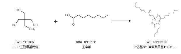 1.通過1,1,1-三羥甲基丙烷和正辛酸合成2-乙基-2-(辛酰氧甲基)-1,3-丙二醇二辛酸酯
