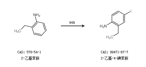 1.通過2-乙基苯胺合成2-乙基-4-碘苯胺,收率約94%;